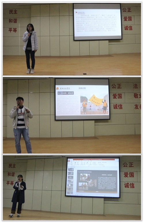 根据《在疫情防控常态化形势下做好2020年全国大中专学生志愿者暑期文化科技卫生“三下乡”社会实践工作》的要求,石油化工学院于今年暑期组织了28支分散实践团队围绕“投身脱贫攻坚”、“助力疫情防控”、“文明志愿服务”等内容,开展了主题鲜明的社会实践活动。为进一步扩大此次社会实践的育人效果,引导鼓励更多同学在社会实践中受教育、长才干、作贡献,10月20日下午,石化学院在彭家坪校区集贤楼108教室组织开展“多彩石化,共话成长行”2020年暑期社会实践分享会,邀请了分散社会实践团队队员代表为2020级全体同学分享了各自的实践经历,活动由学院19级辅导员朱柯宇老师主持。