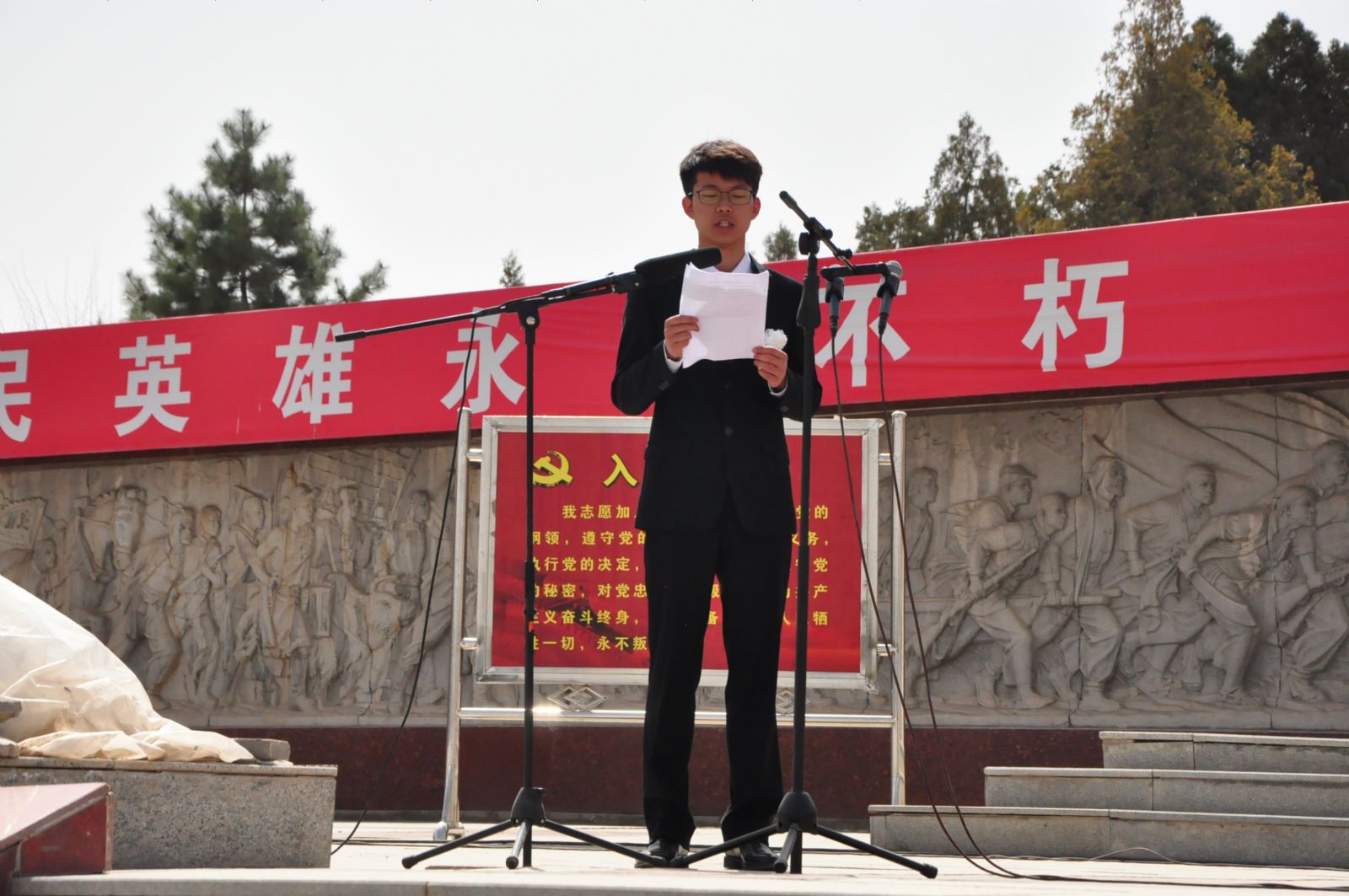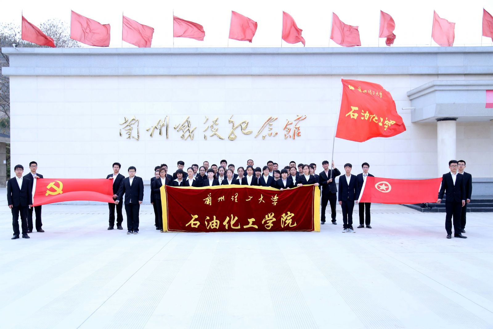 庄严的仪式在宏伟的国歌声中拉开帷幕,首先由学生代表张再实致悼词;紧接着学生代表向英雄纪念碑敬献花圈;随后,全体同学面向纪念碑默哀了三分钟;最后,全体同学依次向纪念碑敬献了亲手制作的小白花。仪式结束后,同学们参观了兰州战役纪念馆和红星照耀中国展览。