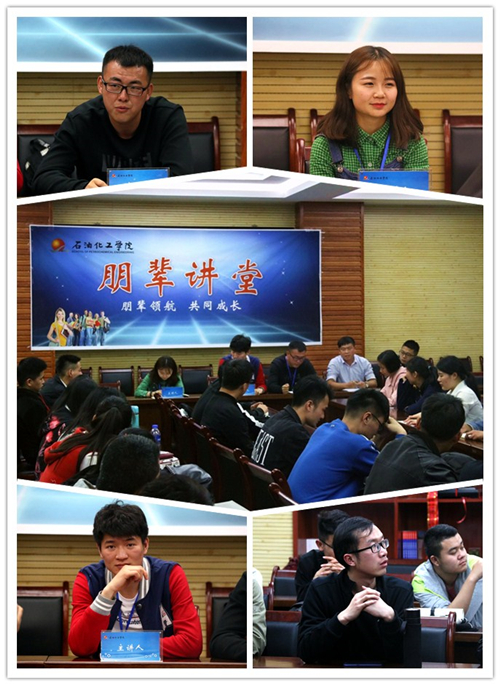 为进一步加强班级建设,本着“强化学生学风,激发学习兴趣,明确奋斗目标”的原则,4月19日晚,2015级化学工程卓越班在318会议室开展“打造考研先进班集体”为主题的朋辈讲堂,邀请2014级考取西北大学李国斌、南京工业大学朱志军、兰州理工大学王洁3位同学担任朋辈讲师团,分享考研的故事,15级化工卓越班全体同学、班主任樊晨浩老师参加。