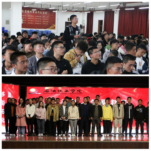 2020年10月13下午2:30,石油化工学院在彭家坪校区大学生活动中心三楼举办石化学院统一战线代表人士校园励志行报告会,邀请石化学院化工系李安教授为新生作报告,全体2020级新生参加报告会,张尚武老师主持大会。