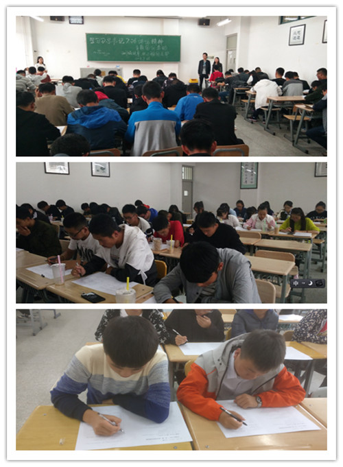 团日活动结束后,2017级各团支部开展了“一学一做”教育实践知识测试,学院团委书记强龙老师、年级辅导员常婕老师负责巡考。测试前学院两委会学生干部对测试要求、注意事项进行说明。测试过程中,各支部团员严肃认真答题,遵守考场纪律,完成试卷后井然有序离场,通过测试引导团员青年以测促学内化于心、以学促做外化于行。