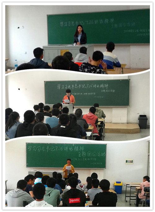 9月26日下午,石油化工学院2017级10个团支部在西校区2号教学楼各教室开展学习交流活动,深入学习贯彻习近平总书记“7·26”重要讲话精神。活动旨在引导青年团员自觉把个人的发展同中华民族的伟大复兴统一起来,自觉把思想和行动统一到习近平总书记的讲话精神上来,以饱满的政治热情和奋发有为的精神状态迎接党的十九大胜利召开。年级辅导员常婕老师参加部分团支部活动。