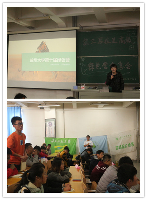 2017年11月4日上午,兰州理工大学环境保护协会在西校区2-206教室举办了“第三届在兰高校绿色营分享会”活动。活动邀请了甘肃省善元社会服务中心的聂东元老师参加,吸引了来自兰州大学,兰州交通大学,兰州财经大学等7所高校的环保社团代表共计100余人,交流过程中分享了包括兰州理工大学第三届春泥计划,兰州大学绿队第十届绿色营,兰州交通大学第七届创新创业绿色营,甘肃政法大学自然营等10个暑期绿色营项目。为大家分享了“乡村饮水安全教育”活动心得,并希望和各高校环保社团共同为乡村饮水安全努力。