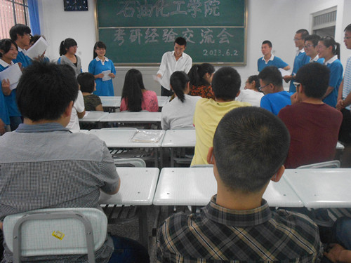 为进一步加强学院学风建设,充分调动同学们的考研积极性, 6月2日晚,石化学院2013年考研经验交流会在西校区2号楼4间教室举行,邀请09级考上清华大学、哈尔滨工业大学等高校研究生的13位同学做经验交流。