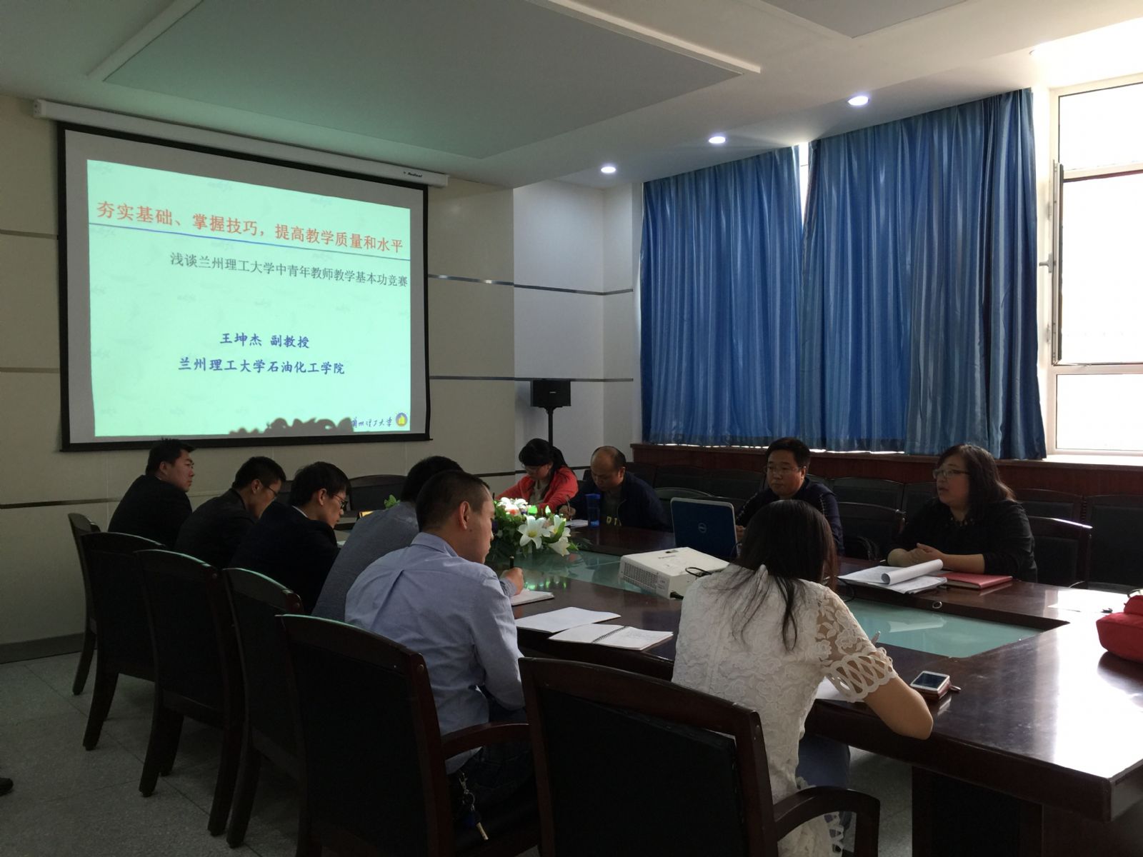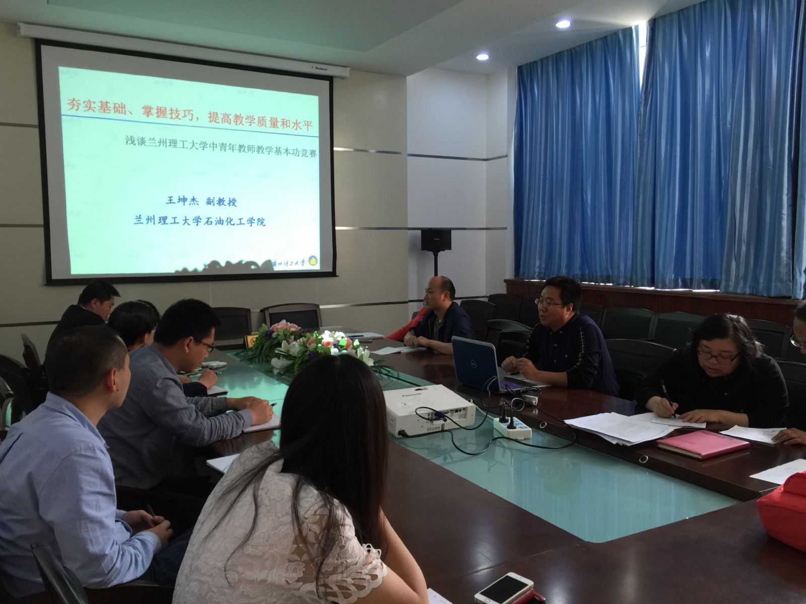 王坤杰老师曾参加历届讲课竞赛并多次获奖,教学经验丰富,参赛心得颇多。做了题为“夯实基础,掌握技巧,提高教学质量和水平”的演讲报告,王老师语重心长、孜孜不倦,将自己的讲课及参赛经验毫无保留地传授给各位青年教师。在座的青年教师也积极和王老师进行了互动和交流。