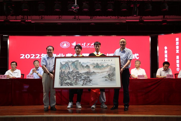 毕业生代表为学院赠送了纪念品,表达了对老师的感激之情和事业发展的美好祝愿。