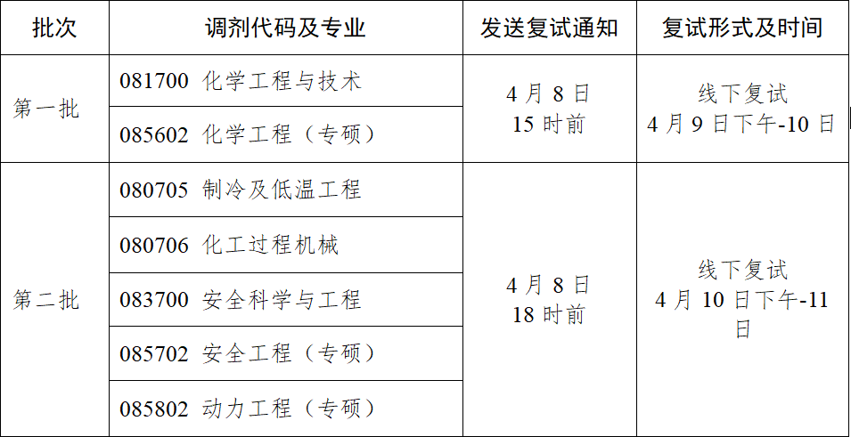 表1 复试批次安排
