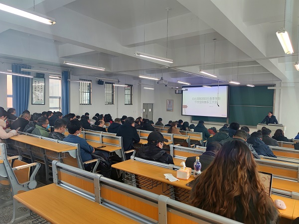 院长李贵贤进行工作总结和安排党委书记任鹏就党的建设和安全稳定工作进行安排大会现场2022年2月28日,学院春季学期开学教职工大会在彭家坪校区抒望楼505教室召开。院长李贵贤对2021...