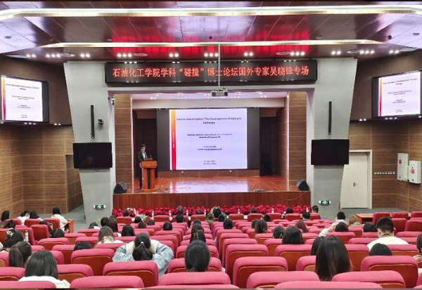 在石化学院学科“碰撞”博士论坛作专场学术报告学术报告会现场2023年4月3日,应石油化工学院邀请,利物浦大学研究员吴晓锋来校开展学术交流,并在石化学院学科“碰撞”博士论坛作题...